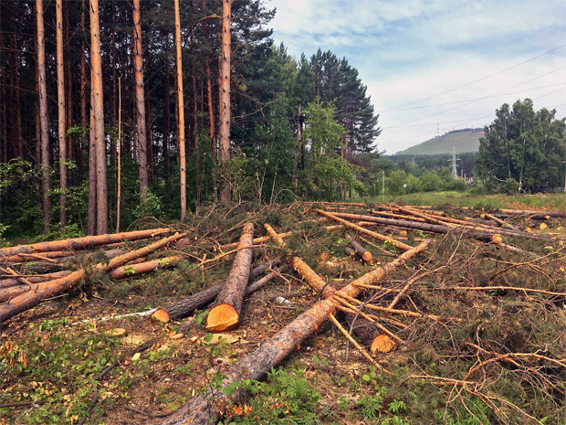 Поваленные деревья очищают от сучьев и проводят их раскряжевку. Порубочные остатки укладывают в штабеля вдоль границ просеки, очищая трассу сооружаемой линии электропередачи. На участках, где будут сооружены фундаменты опор, корчуют пни.